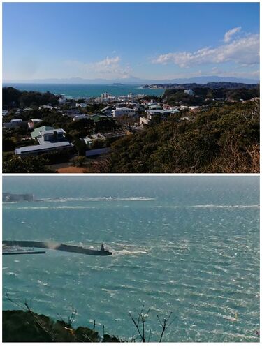 強風、晴れ。午前中から散歩 披露山公園から披露山庭園住宅を経由して小坪小学校の裏に降り、ハゲ山へ。 夕方は缶ビール片手に逗子海岸。ご近所さんと立ち話。